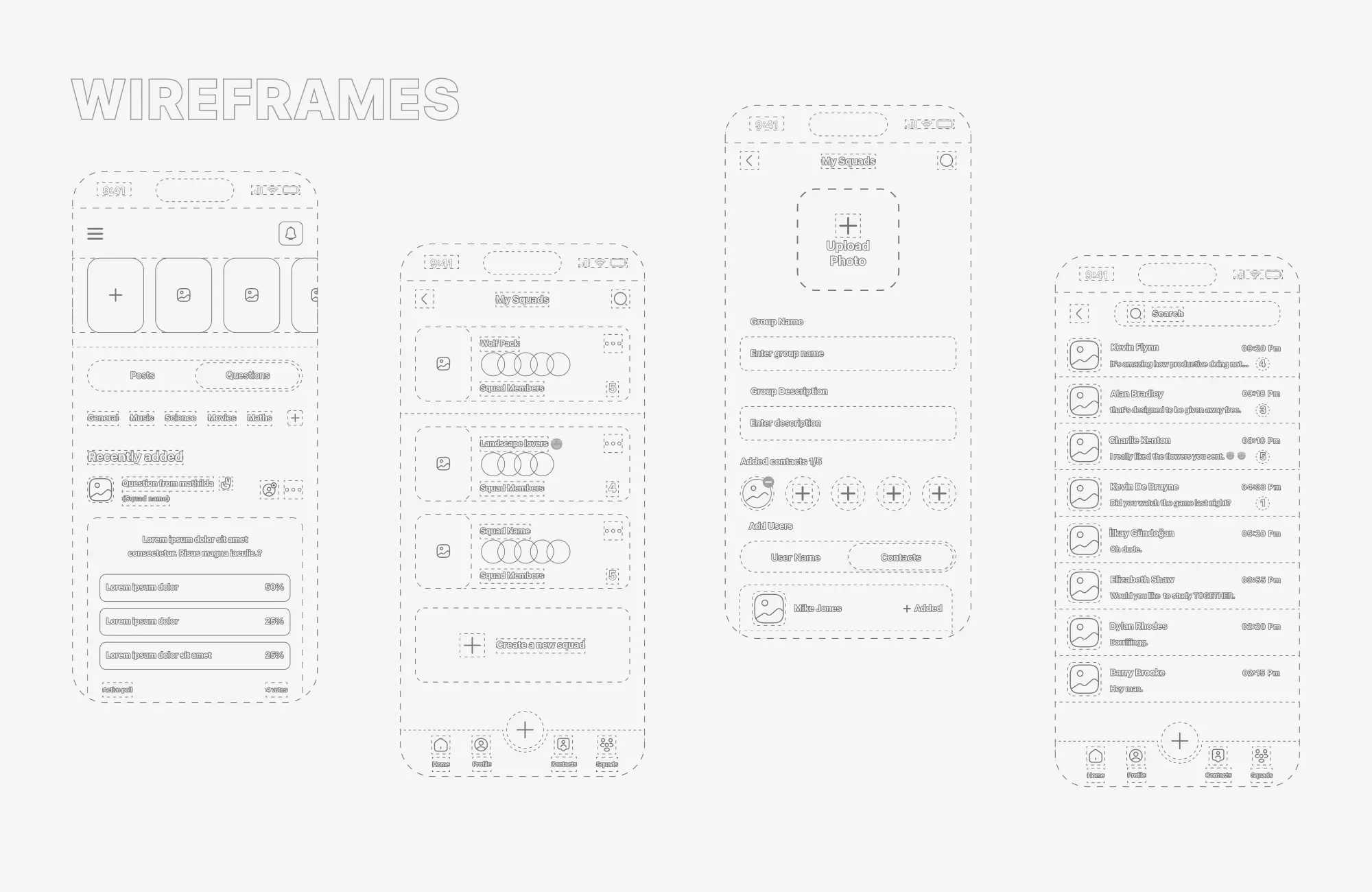 Wireframes and prototypes explored how interaction patterns could feel natural, informal, and organic.