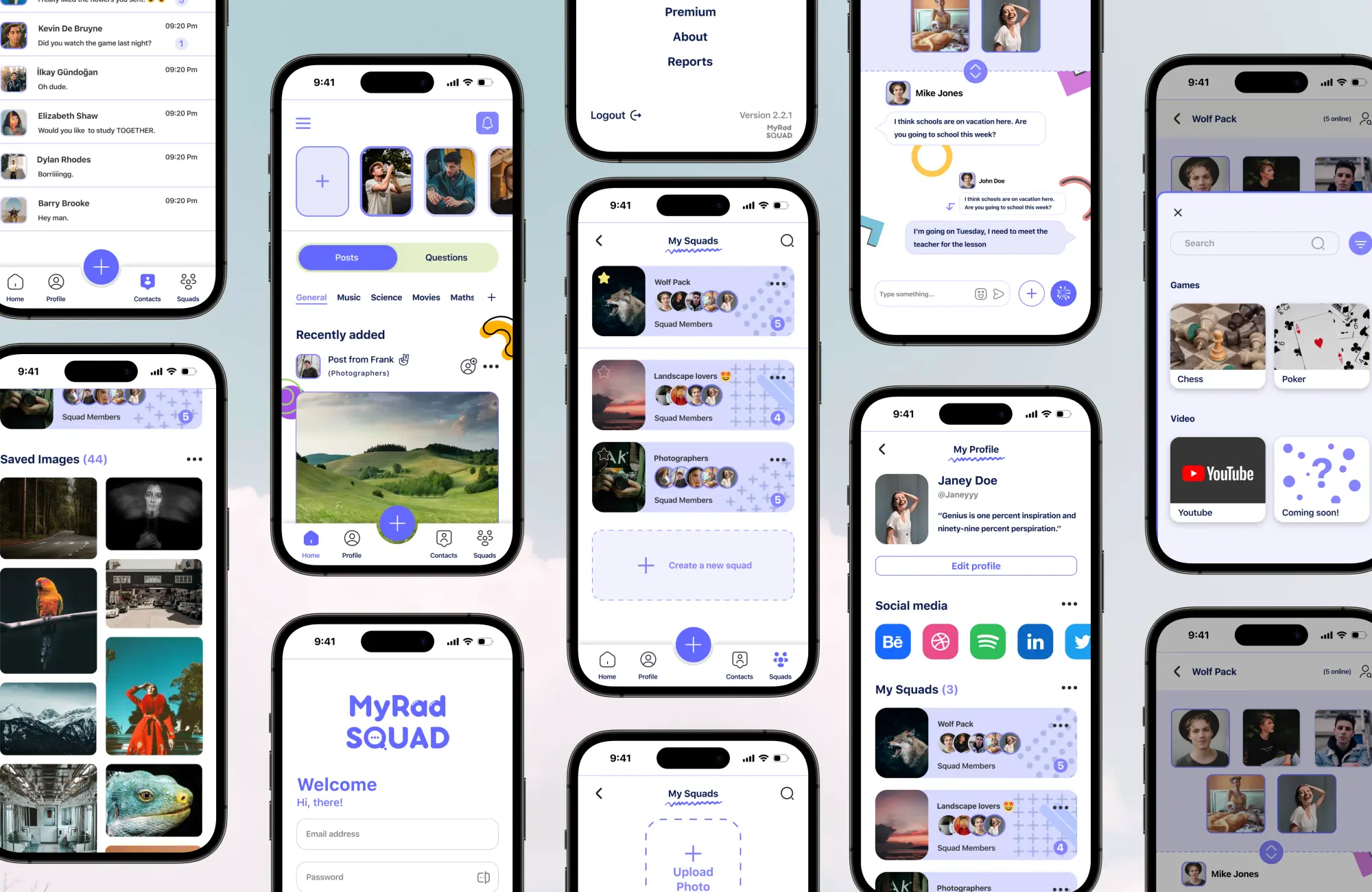 MyRadSquad is a conceptual mobile communication app designed to help small groups of friends stay connected through text, voice, and video. The project explores how limiting group size and simplifying interaction can create more intimate and meaningful digital communication.